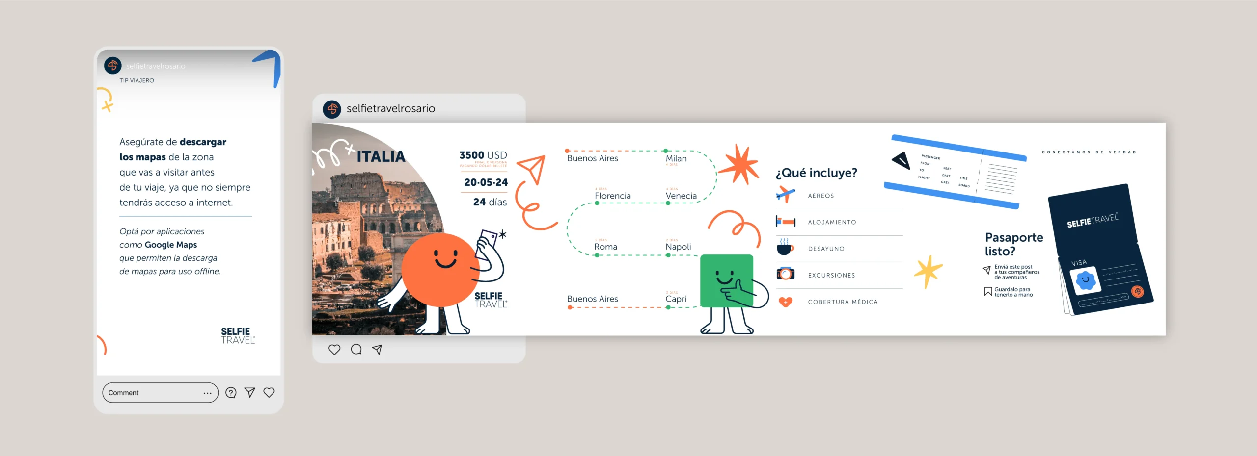 Selfie travel eligió a Human Studio para potenciar su marca. Trabajamos sobre la apertura de la misma a través del branding e incluyendo ilustraciones originales, a partir de las cuales se produjo un sistema gráfico completo para el posterior desarrollo de las comunicaciones institucionales y a potenciales clientes. También trabajamos sobre la nueva web de la marca, generando una experiencia más amable para con sus usuarios.